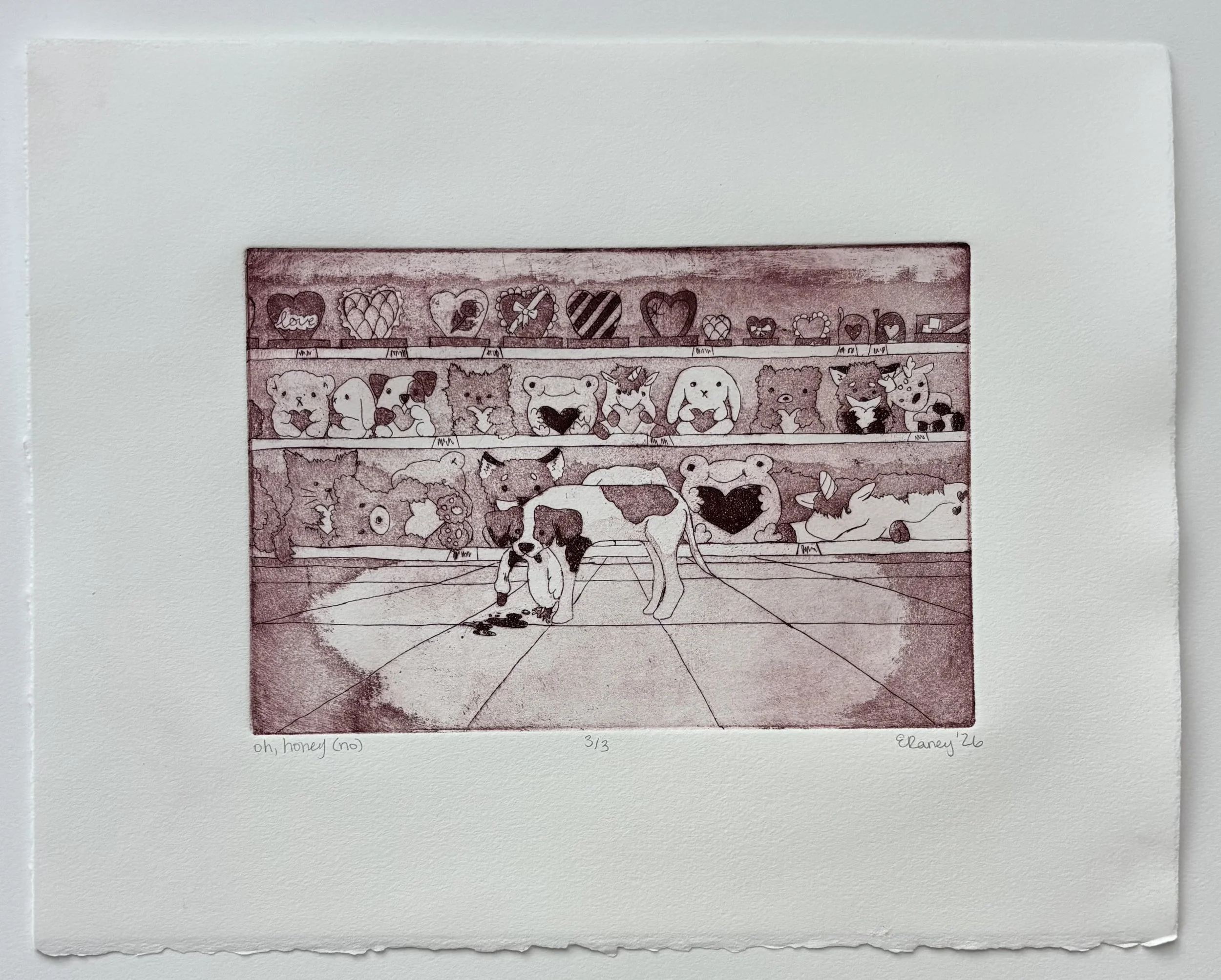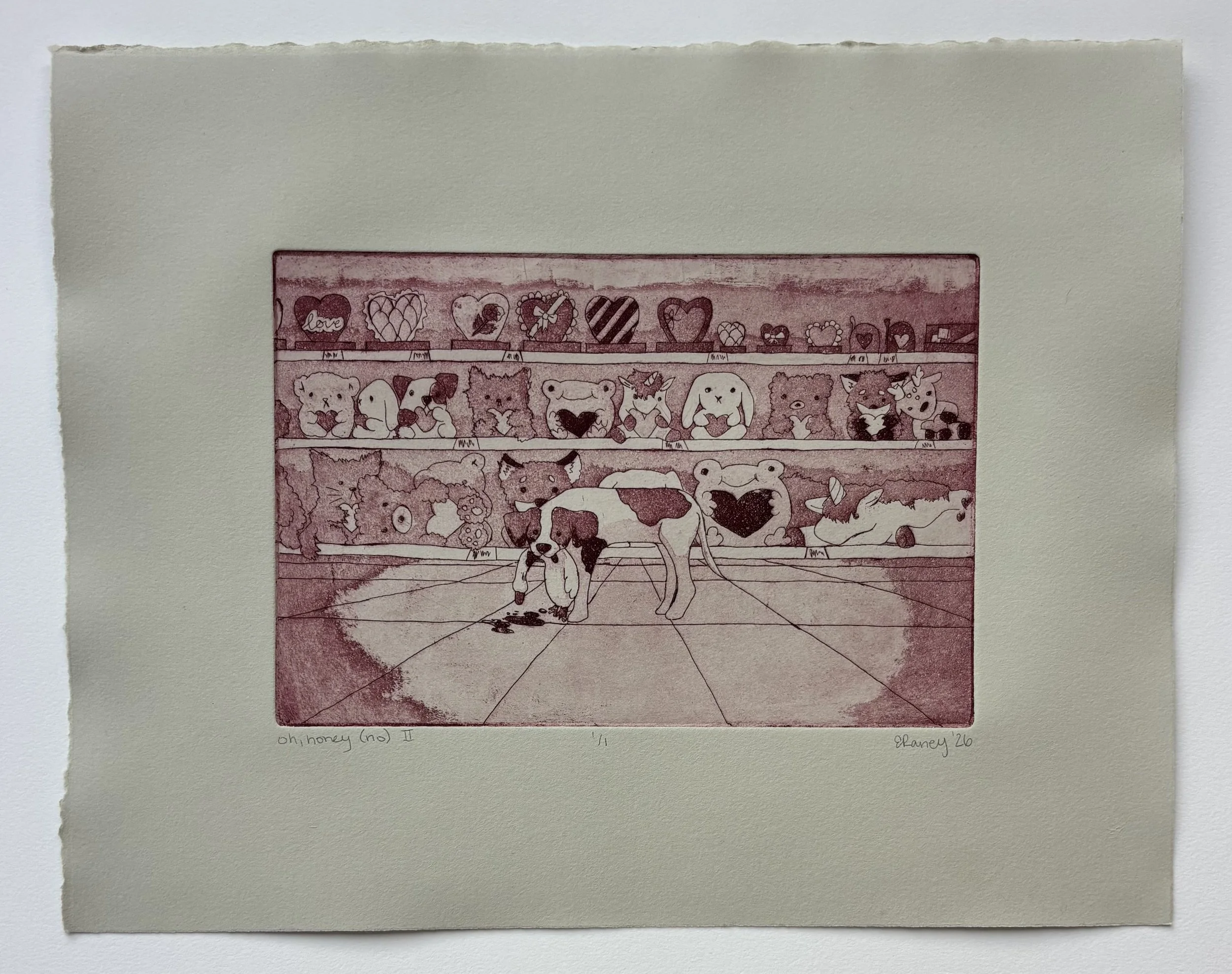 This piece highlights the experience of loving people the “wrong” way. Between autism and CPTSD, I rarely feel like I’m flirting or dating or even showing affection in a normal or acceptable way. That confusion of acceptable courting rituals is recontextualized here as a hunting dog with a fresh kill in his mouth placed rather disjointedly against a backdrop of a CVS Valentine’s Day aisle. The acceptable way of loving (commercial flirtation) alienates the dog (who is showing affection and dedication the way he is bred and trained to do so) and provides a bit of representational distance from the aforementioned personal experiences of loving “incorrectly.”